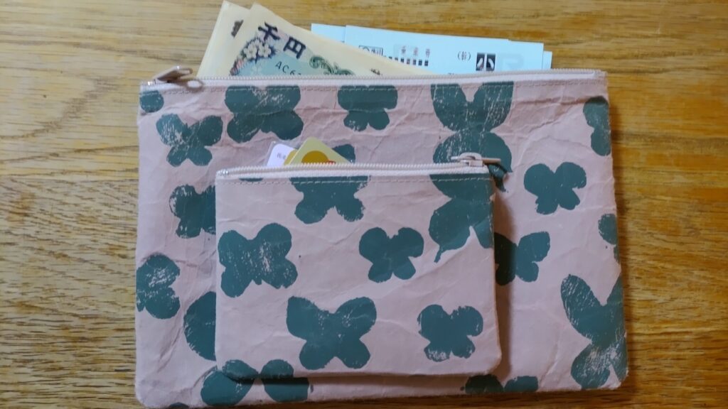 旅の時はこちらのミナペルホネンとSIWAのコラボのポーチを使っています。お金の出し入れレシートの管理もすっきりできてかなり便利に使えています