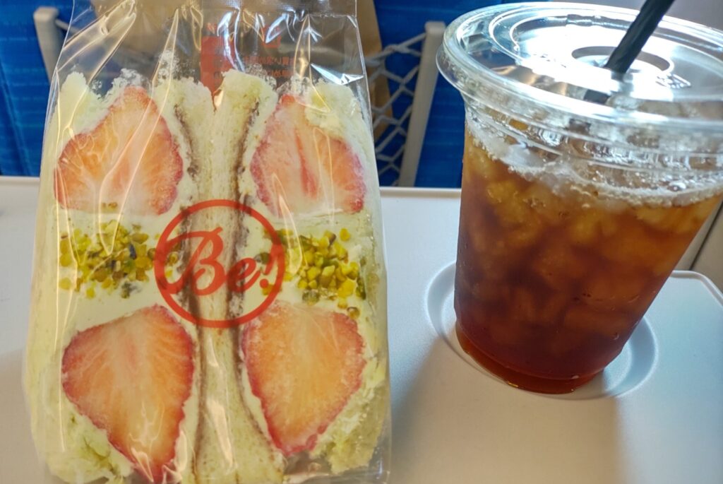 イチゴがめっちゃフレッシュで甘酸っぱく、生クリームもそうあまくなく、もう1セットも平気で食べられそうでした。