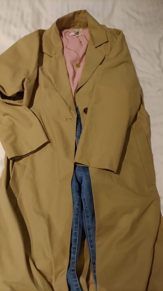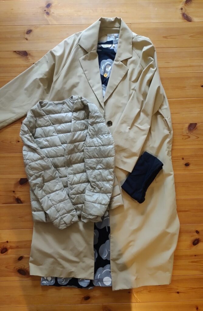 1日目の服装と同じです。気温は20度を超えていたので、インナーダウンは不要。さらに薄手のトレンチコートさえもなくても大丈夫だったかもしれないです。
