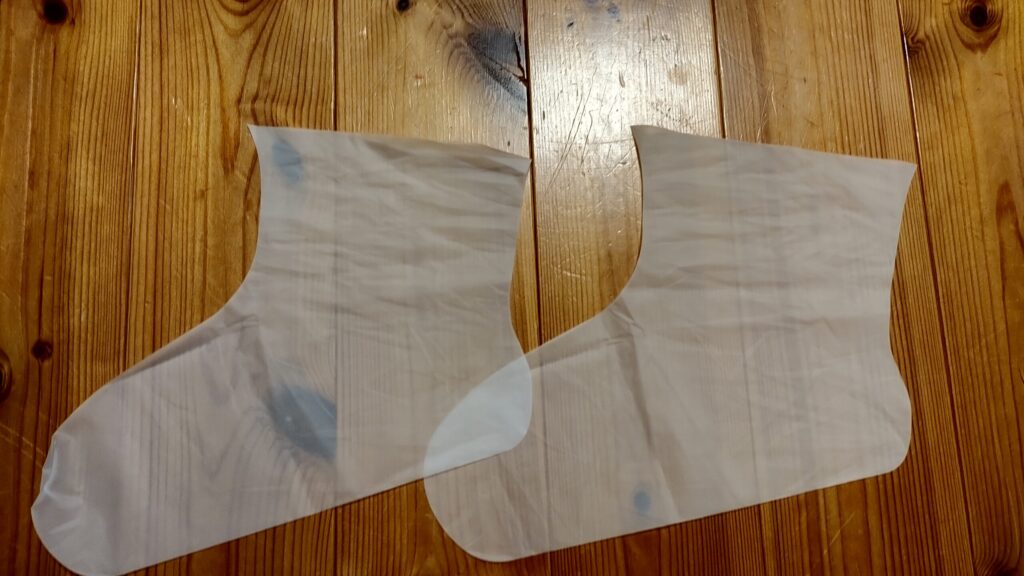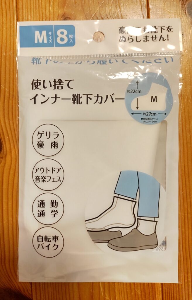 こちらは、靴下の上から履く使い捨てインナー靴下カバー(セリアで購入)