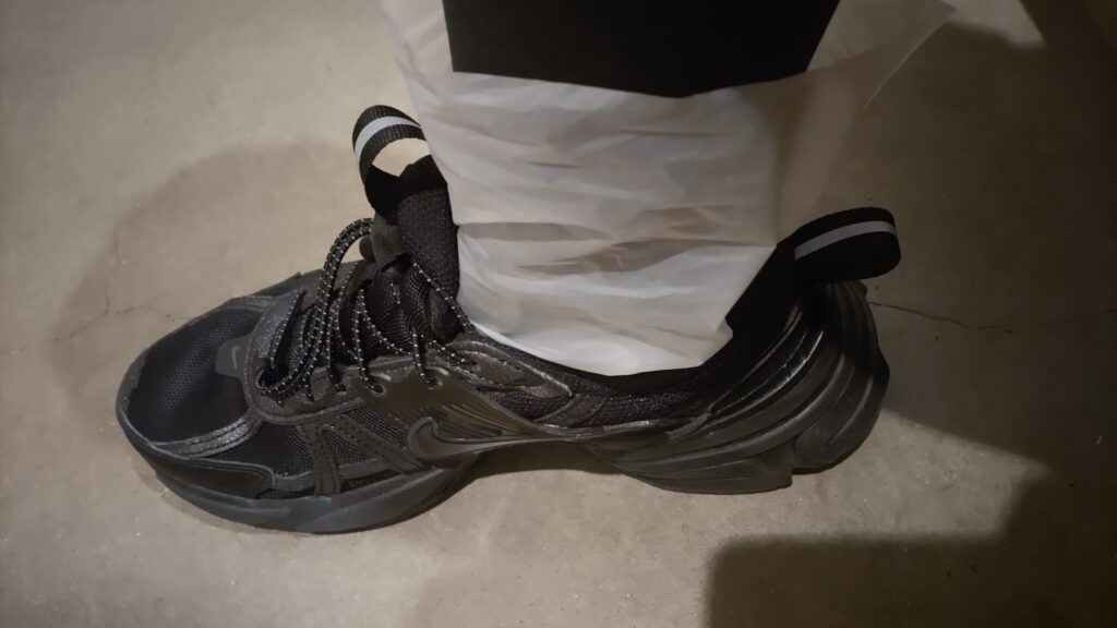 実際に靴下カバーを履いて靴をはいてみました