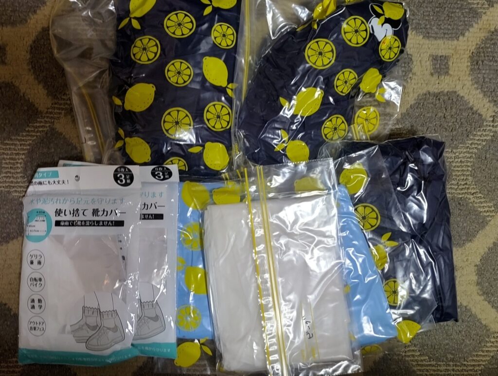 予報では、雨にあう確率が高くて、雨でもできるだけ、ストレスを少なくなるために雨対策グッズを購入していました。